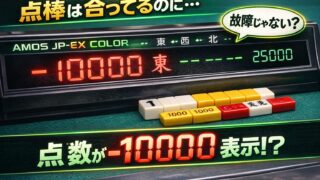 AMOS JP-EX COLOR(自動麻雀卓)を使っていて、**「ちゃんと点棒を入れているのに、点数表示がなぜかマイナス10,000点(または20,000点)引かれた表示になる」**という現象(トラブルやエラー)に困ったことはありませんか?本記事では、実際に我々が遭遇したトラブルと、そのシンプルで確実な対処法を、同じ状況で困っている方に向けて分かりやすく解説します。